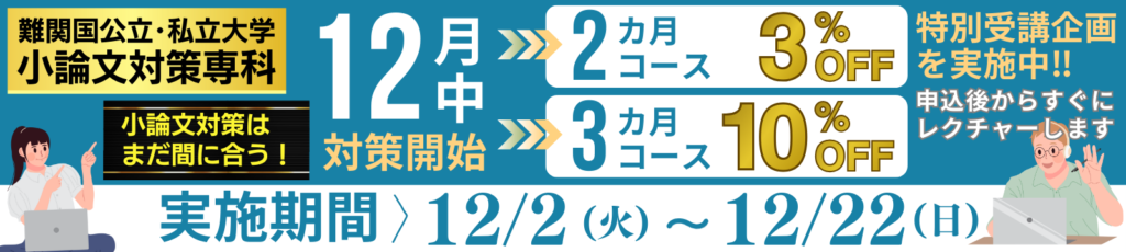 難度の高い小論文出題がなされる大学学部の対策に特化したコースです