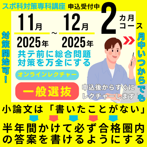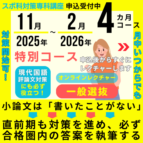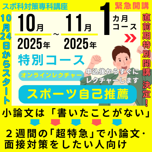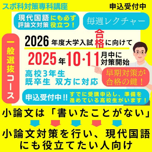 【一般選抜】【スポーツ自己推薦】スポ科総合問題・小論文対策を徹底的におこなうことで、自信や余裕をもって本番試験に臨むためのスポ科専科対策コース